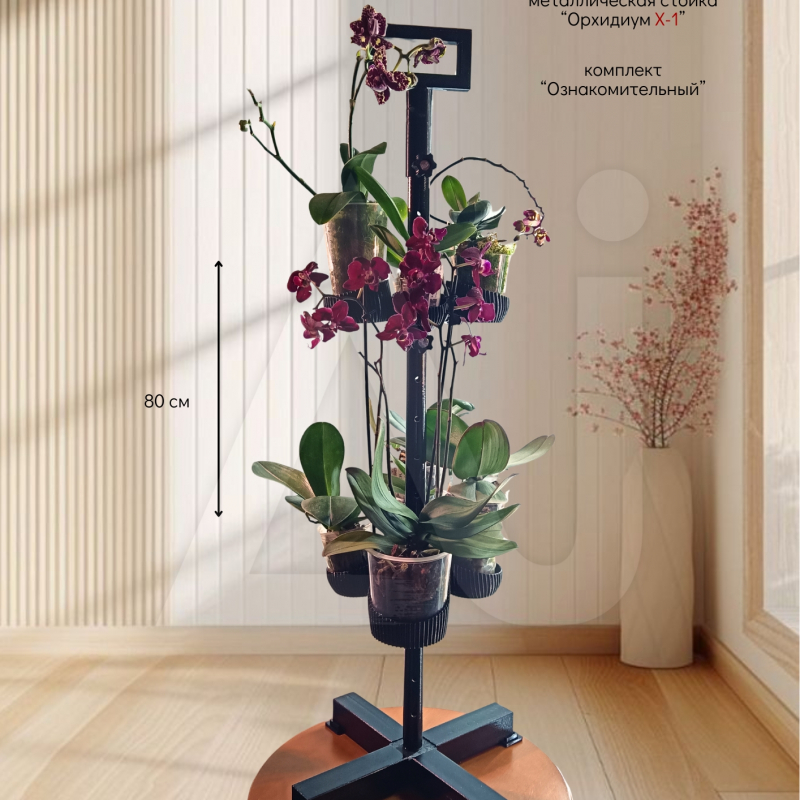 Стойка для цветов Орхидиум Х-1 (стойка для растений) - это ознакомительный комплект нашей переносной металлической стойки, который включает в себя:
